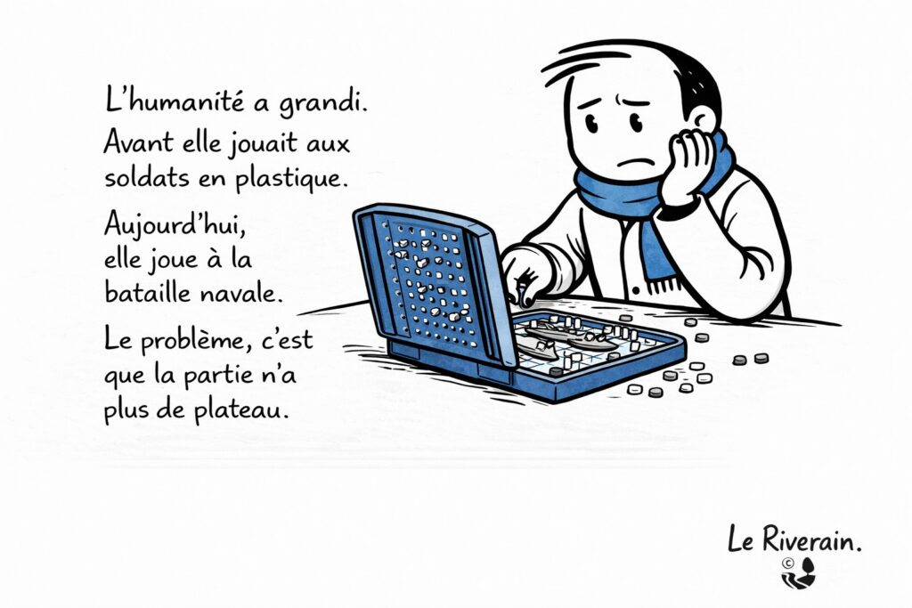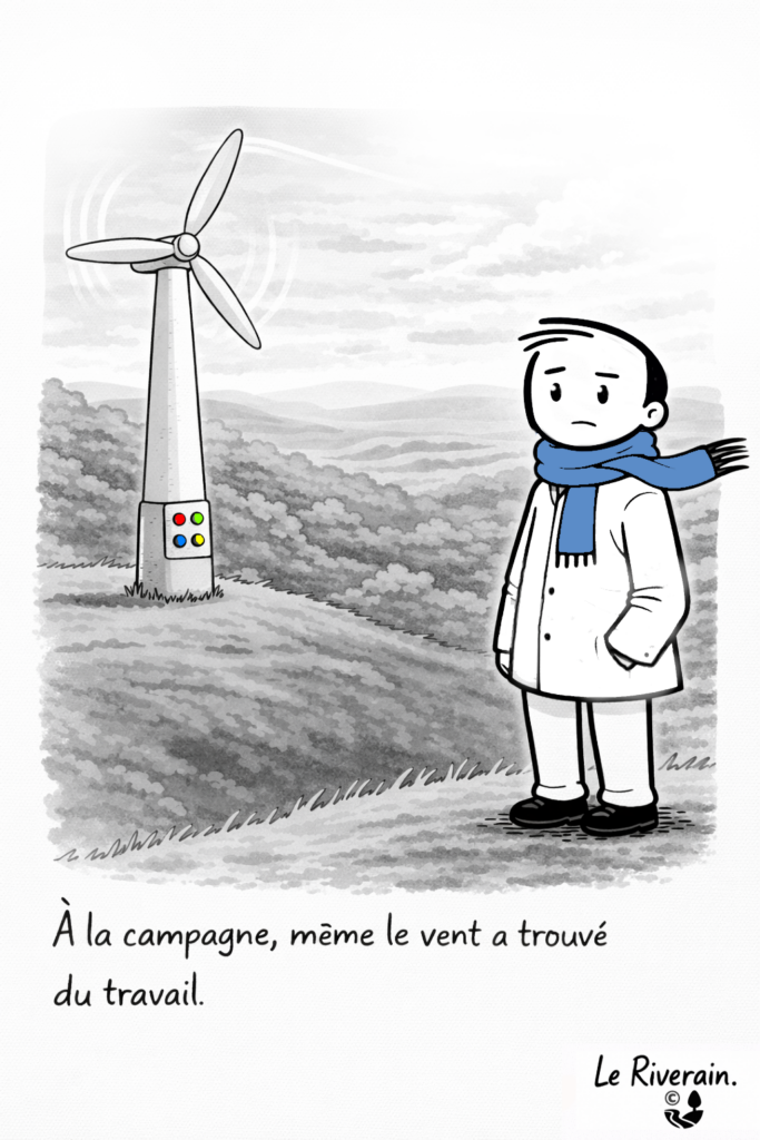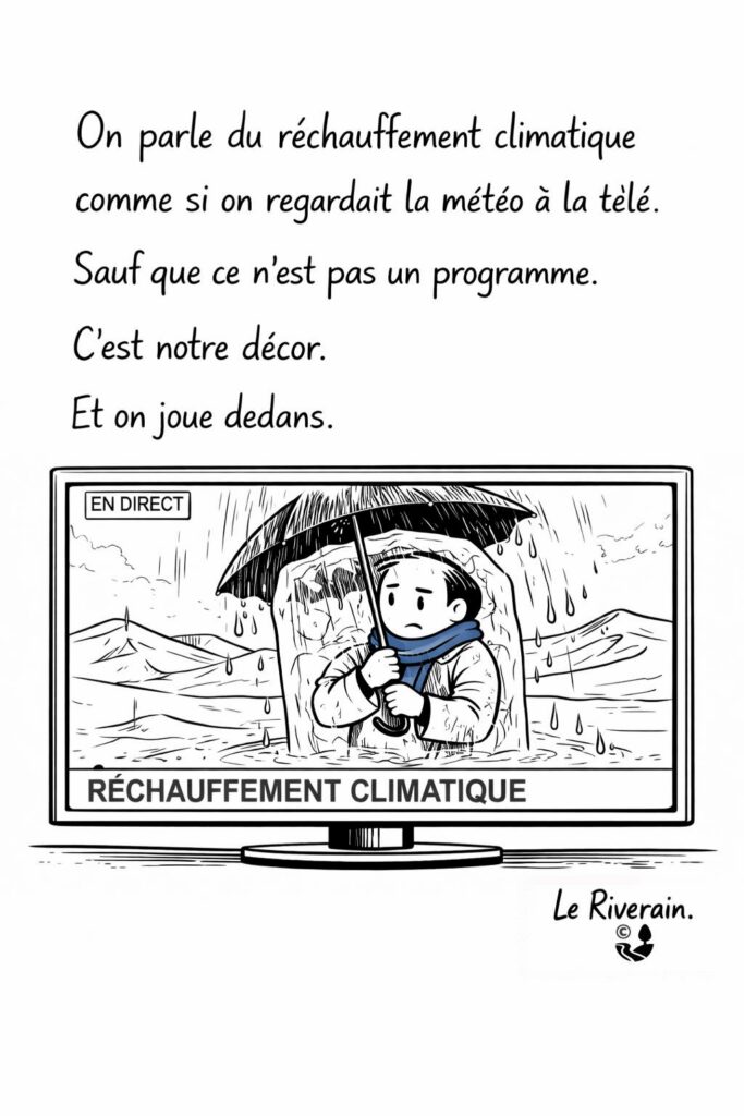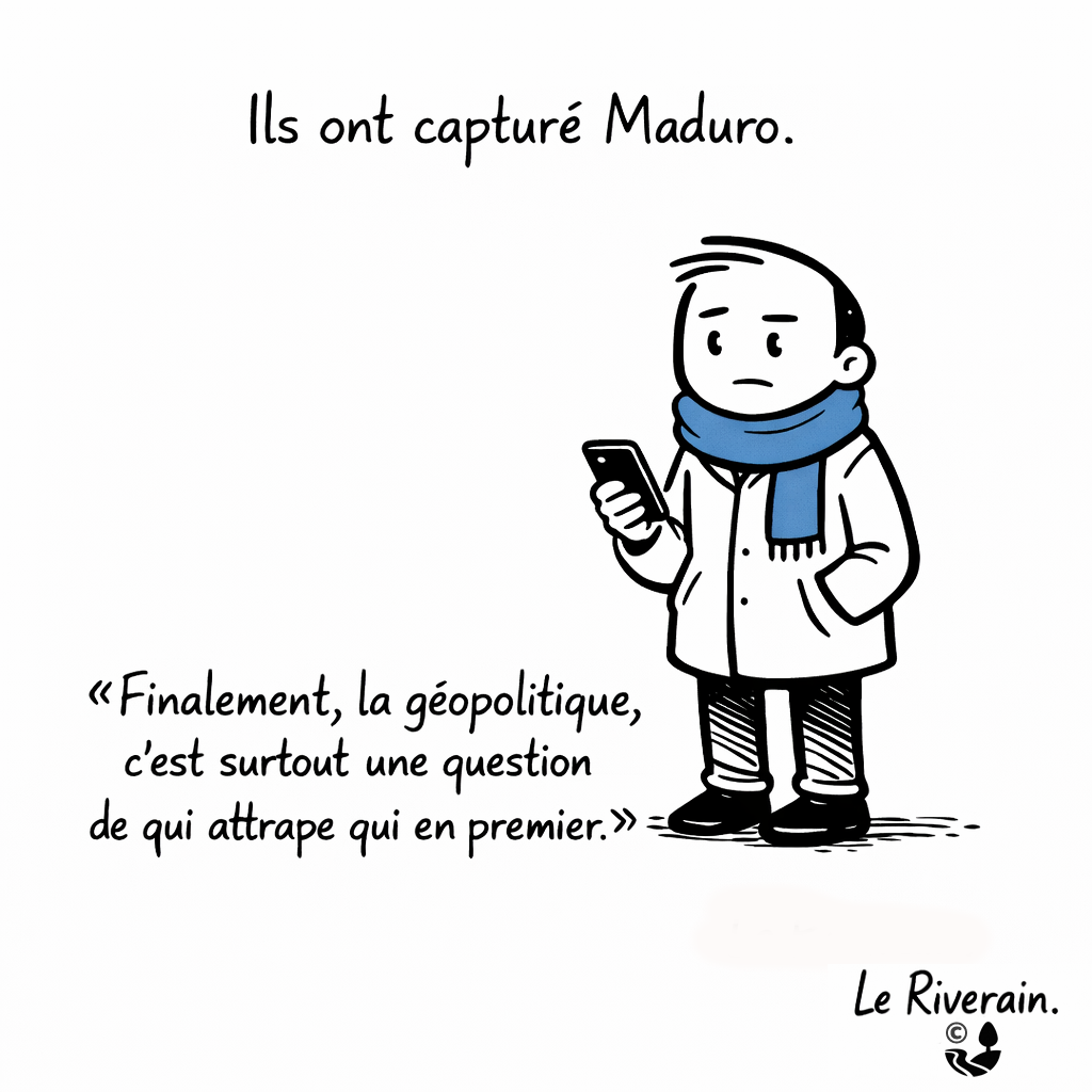 Le Riverain observe l’actualité et la société avec un regard attentif, critique et souvent ironique. À travers ses dessins, il capte les contradictions du quotidien, les débats publics et les petites absurdités de notre époque.